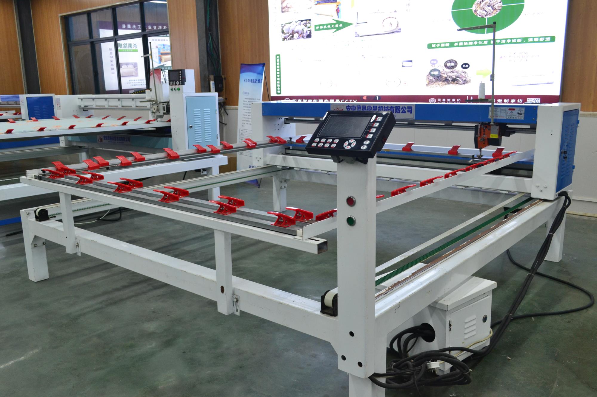 配備新一代絎縫機(jī)專用電腦,內(nèi)部實時檢測,確保不拉壞被子;LED高亮度工作燈,夜間作業(yè)穿線更加安全方便;