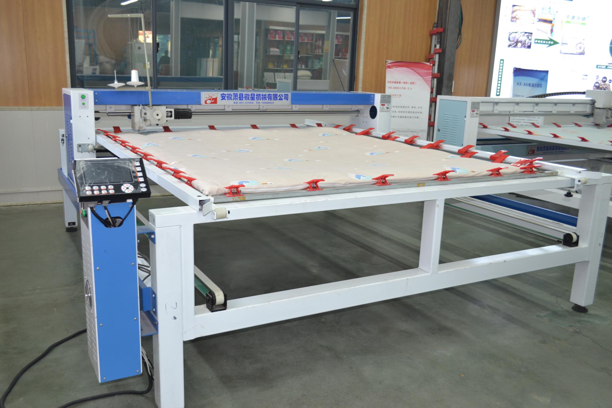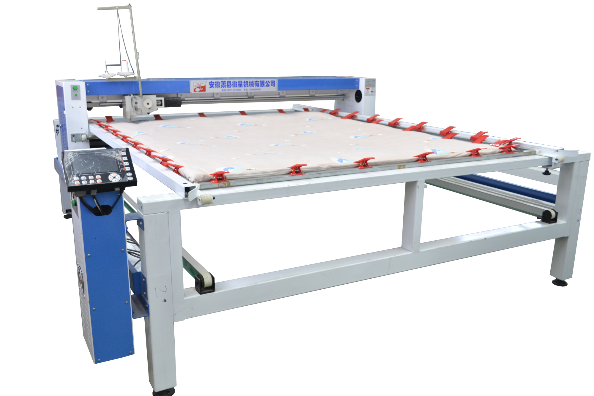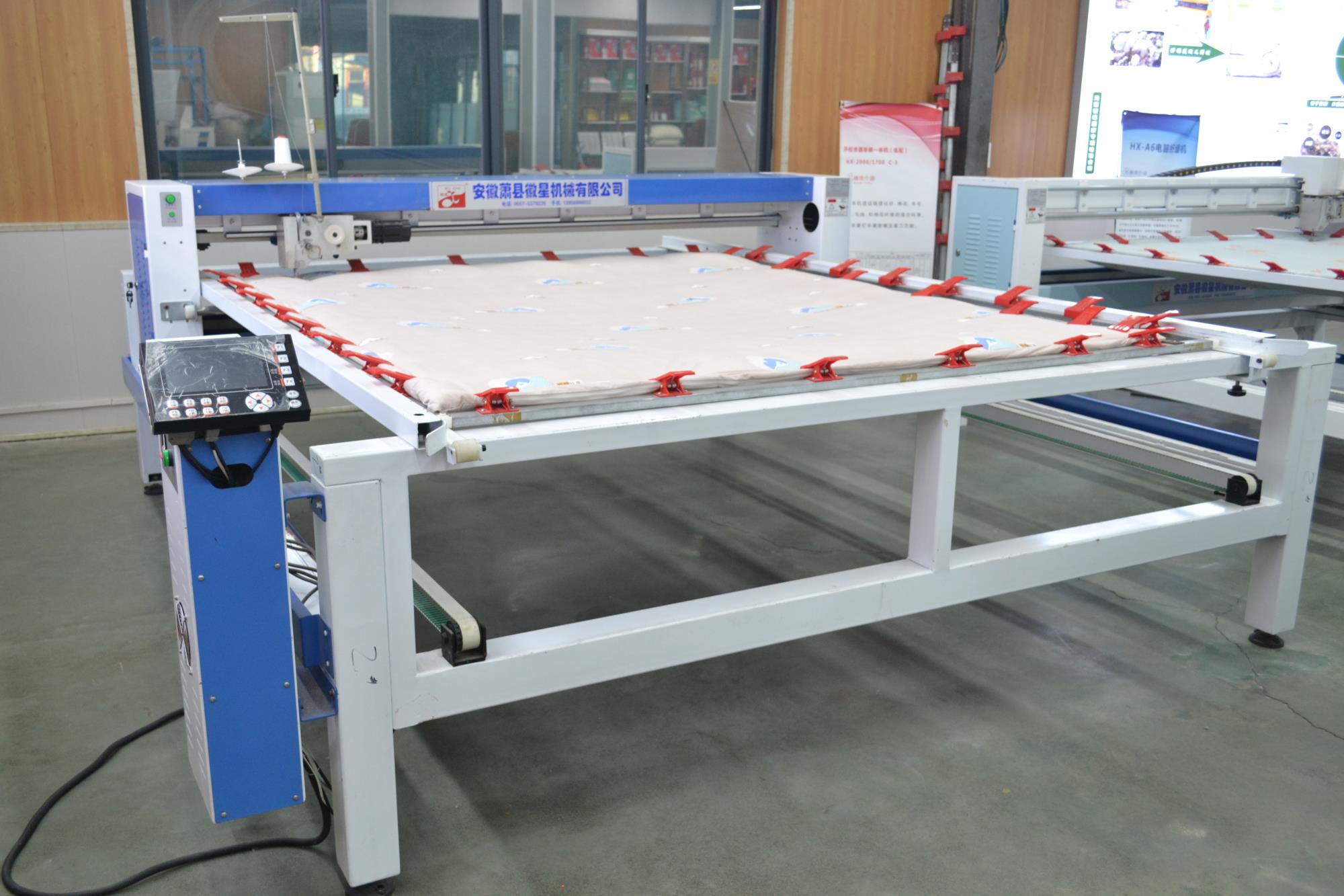 產(chǎn)品簡介:1.移動線路全部采用拖鏈裝置,設(shè)備整潔。 2.斷線檢查,面線段線自動停機,工作燈,穿線更方便。 3.四條同步皮短傳動,絎縫精度高。 4.高一規(guī)格和厚度的炫彩,確保了設(shè)備運行的穩(wěn)定和吃厚度。 5.采用三相混合式步進電機,噪音接近無聲。 6.液晶顯示器,小控制柜,占地小(可選超小型控制柜) 7.配備新一代絎縫機專用電腦,穩(wěn)定可靠,性能優(yōu)良。 8.全新控制系統(tǒng),內(nèi)部實時檢測,確保不拉壞被子。 9.LED高亮度工作燈,夜間作業(yè)穿線更加安全方便。 10.電腦、電機出現(xiàn)故障自動停機,同時電腦畫面顯示故障內(nèi)容。 11.電腦采用DST花樣打板系統(tǒng),自帶幾百常用花型。"