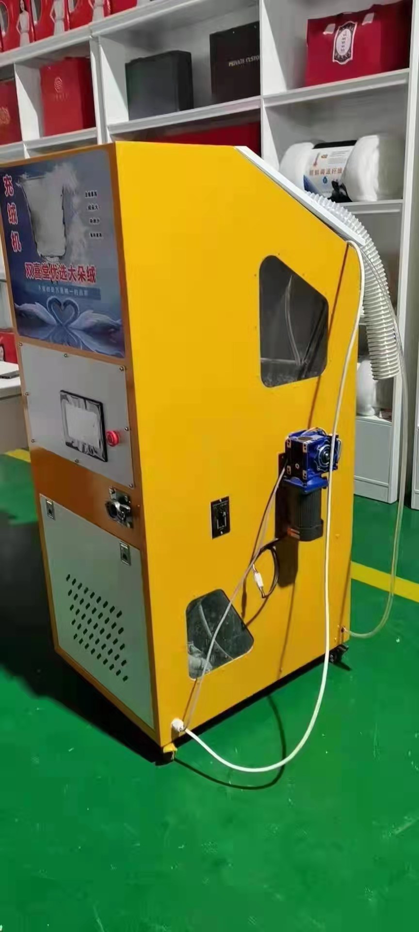 充絨機保持羽絨原油的柔軟性和彈性感。半自動操作,可根據特點調節充絨范圍,誤差?。徊僮骱唵?,節省人工成本,充絨在封閉箱內,確保生產現場環境整潔干凈。生產效率高,平均計量時間3-5秒。效率提高2倍以上,可靠性穩定性好。本設備可成功除掉充絨中80%的金屬,該機型100%有效的回收出口中的三絨,確保環境衛生。適合在商店作為羽絨被現充現賣設備。